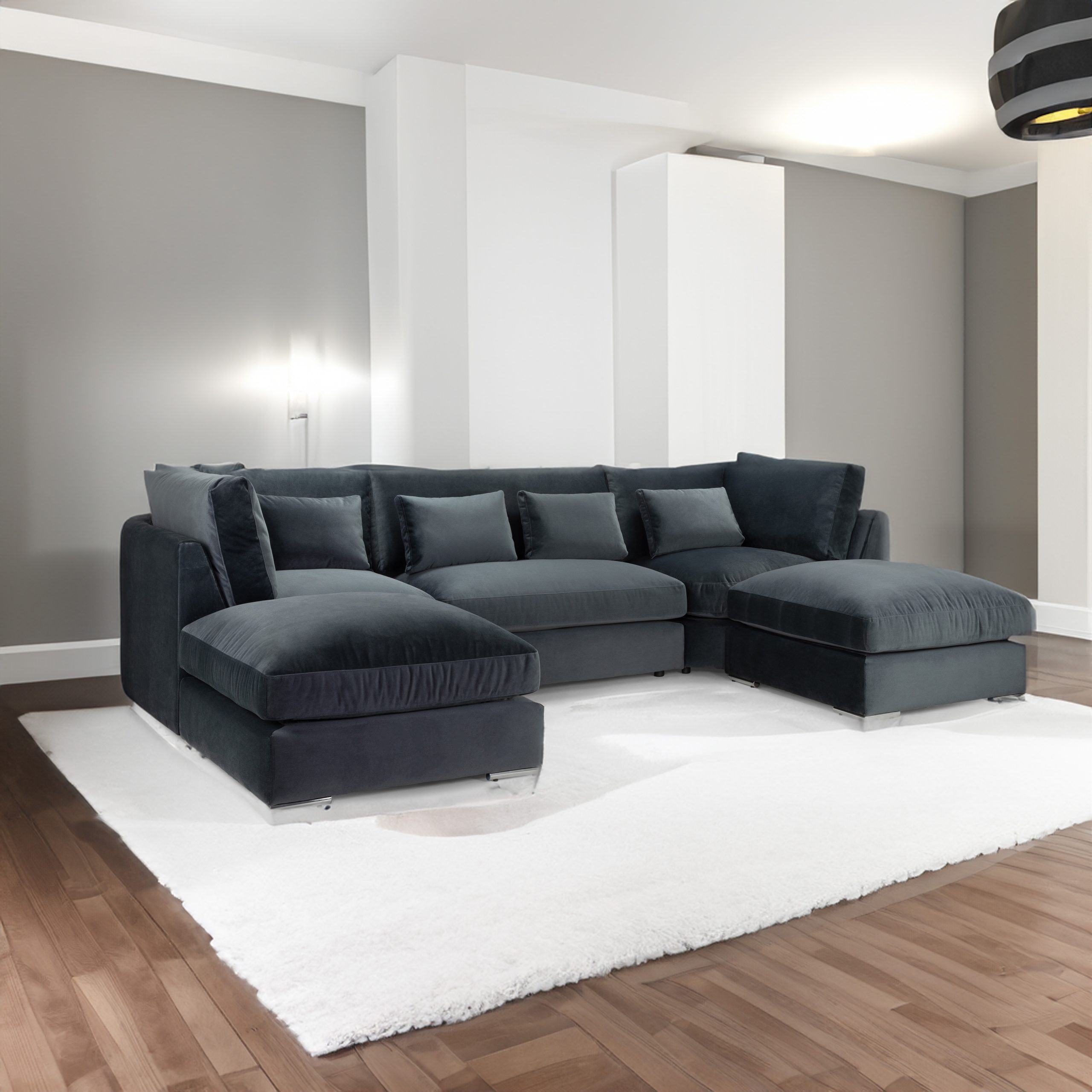 Luxury ! with its plush velvet upholstery, the Belgravia large u shape exudes elegance and style. The moveable footstool allows you to create different configurations to suit your needs and space.