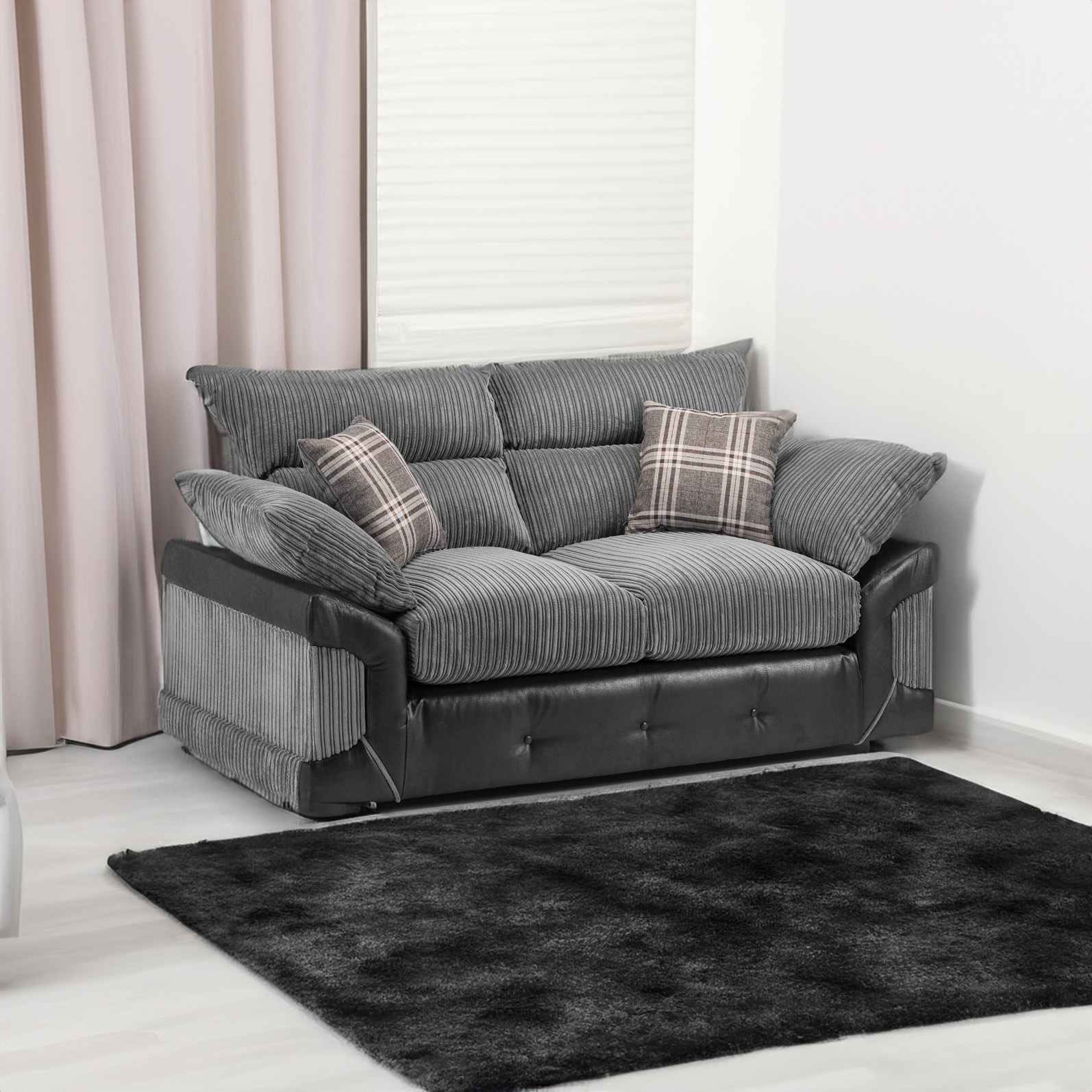 A very popular choice ! jumbo cord fabric with soft foam cushions. A very cosy sofa !