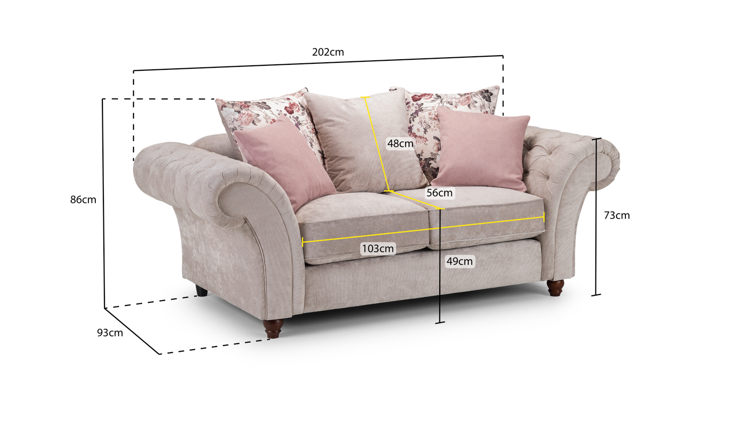 A modern take on a classic design ! With foam filled cushions and soft polyester upholstery, extremely comfortable whilst looking elegant and stylish !